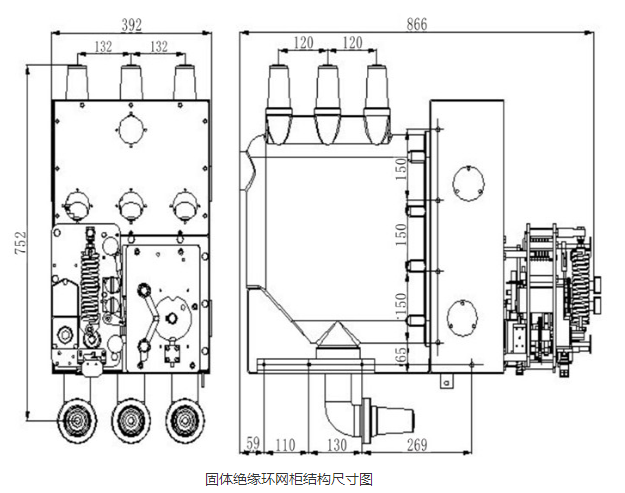 環網柜的固體絕緣系統采用APG工藝成型的固封極柱將真空滅弧室和上下出線座等載流導體封裝成一個整體。隔離開關安裝在固封極柱的腔體內,使得相間絕緣以固體絕緣方式為主絕緣方式。單相母線可擴展設計,實現功能單元無線擴展。