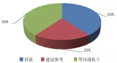 環繞固體絕緣環網柜放電量不能超過20pC的研究,附和的占比40%;建議參閱的占比20%;不附和的無;平等或低于的占比40%。如圖8所示。